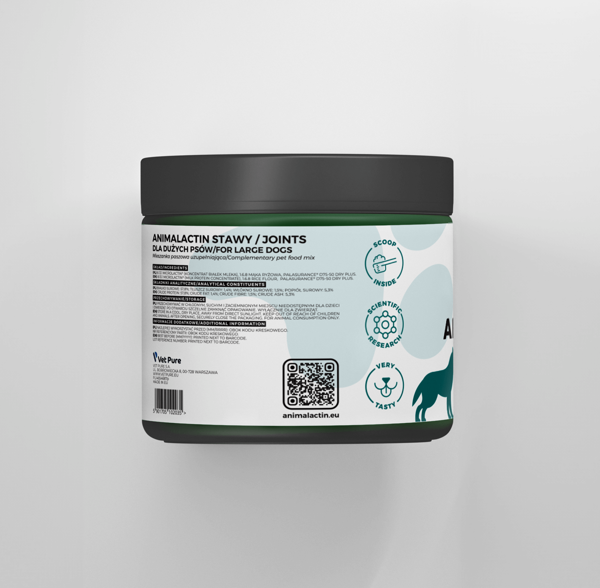 Suplementy ANIMALACTIN® są bezpieczne dla większości zwierząt, ale w przypadku przewlekłych schorzeń zawsze zalecamy konsultację z weterynarzem przed rozpoczęciem suplementacji. Weterynarz pomoże ocenić, czy dany produkt jest odpowiedni dla konkretnego przypadku.